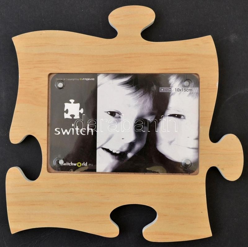 Puzzle formájú fa képkeret 10×15 cm-es fotókhoz