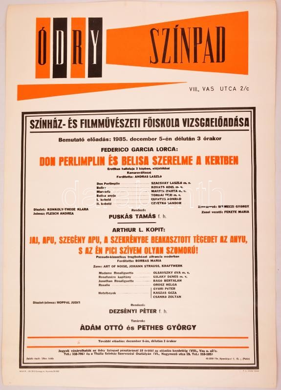 1985 Ódry szinpad színházi plakát 47x57 cm