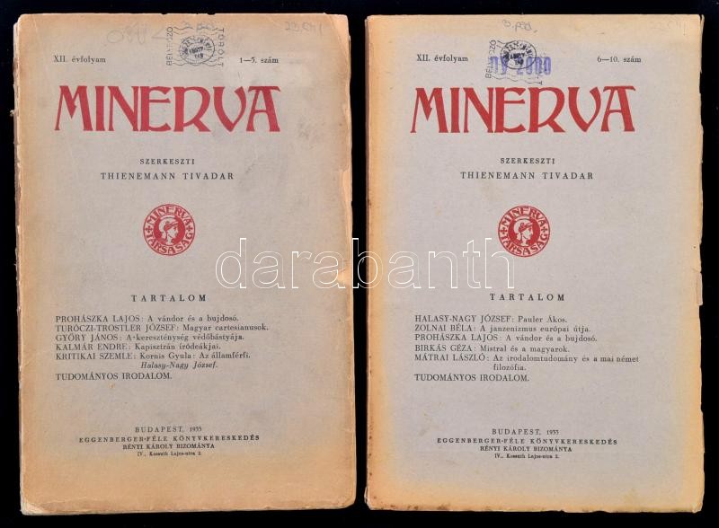 Description: 1933 Minerva. XII. évf. 1-5,6-10 számok. Szerk.: Thienemann Tivadar. Bp., 1933, Eggenberger-féle Könyvkereskedés. Kiadói papírkötés, az I. füzet rossz állapotban.