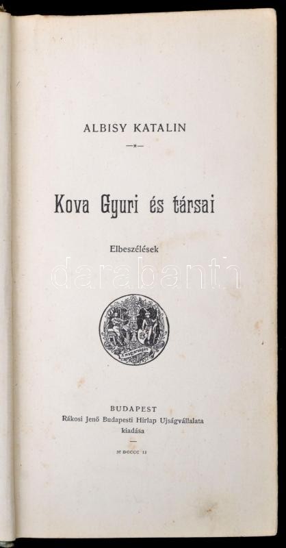 https://www.darabanth.com/en/342-Online-auction/342.0/Books/Books-Other-rarities~1000019/Albisy-Katalin-Kova-Gyuri-es-tarsai-Elbeszelesek-Bp-1902-Rakosi-Jeno-Atkotott-kopottas~II1910416