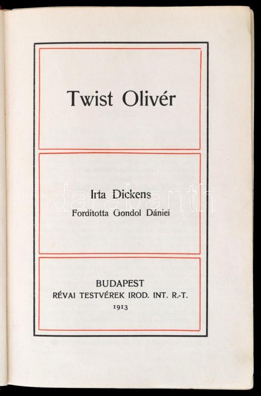 Dickens: Twist Olivér. Fordította: Gondol Dániel. Klasszikus Regénytár... https://www.darabanth.com/en/342-Online-auction/342.0/Books/Books-Other-rarities~1000019/Dickens-Twist-Oliver-Forditotta-Gondol-Daniel-Klasszikus-Regenytar-Bp-1913-Revai-AtkC3~II1924842
