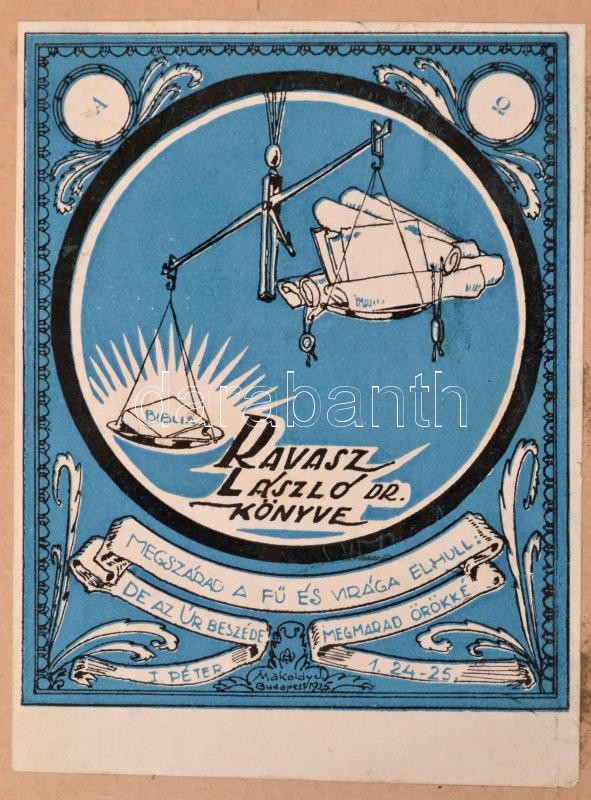 Dr. Ravasz László (1882-1975) református lelkész, a Dunamelléki református egyházkerület püspöke (1921-1948) névbejegyzésével és ex libris-szével.