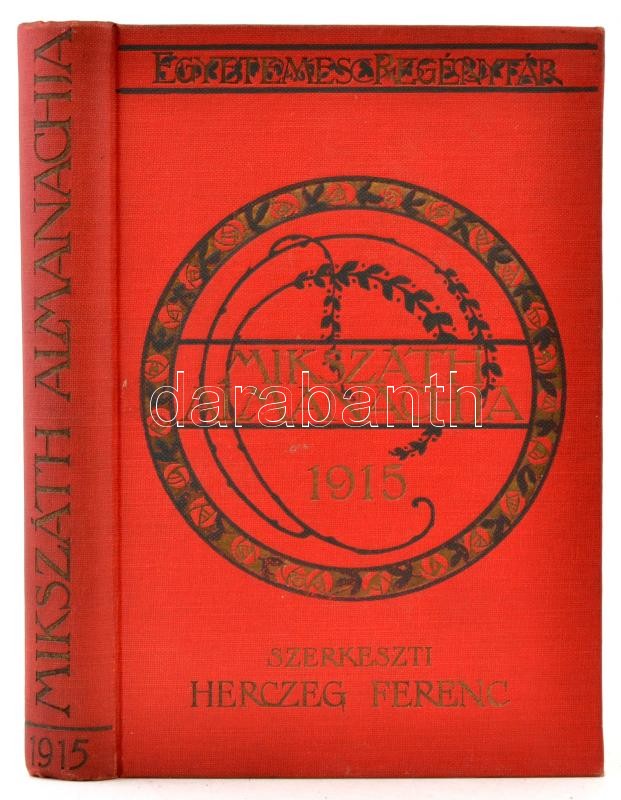 Egyetemes Regénytár. Mikszáth Almanach az 1915. évre. Szerk.: Herczeg Ferenc. Bp., 1915, Singer és Wolfner. Kiadói aranyozott, festett, illusztrált zöld egészvászon, Gottermayer-féle kötés, márványozott lapélekkel, kissé kopott borítóval.
