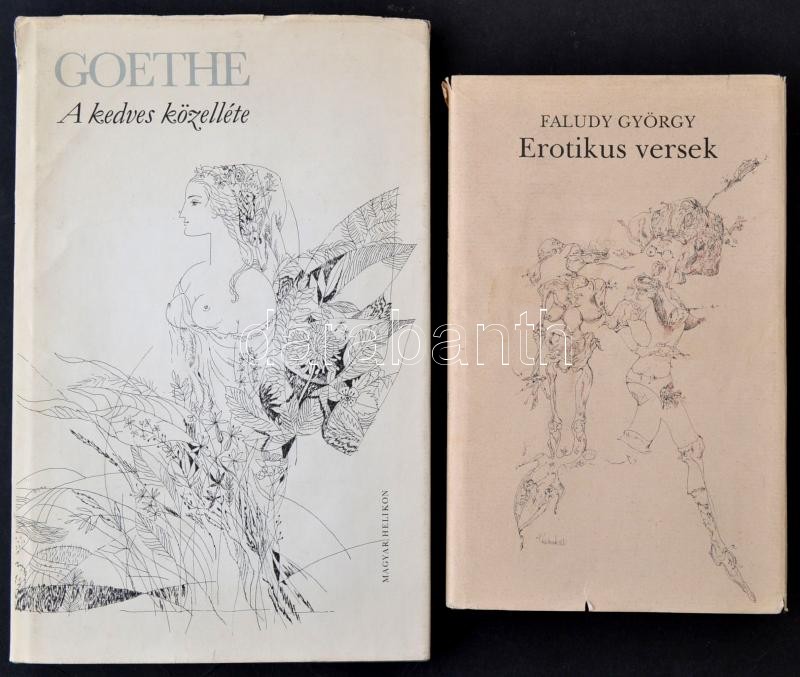 Goethe: A kedves közelléte. Válogatta: Lator László. Illusztrálta: Reich Károly. Bp.,1982,Magyar Helikon. Kiadói kartonált papírkötés, kiadói papír védőborítóban. +Faludy György: Erotikus versek. Szerk.: Fóti Edit. Illusztrálta Karakas András. Bp., 1990, Magyar Világ. Kiadói egészvászon-kötés, kiadói papír védőborítóban.