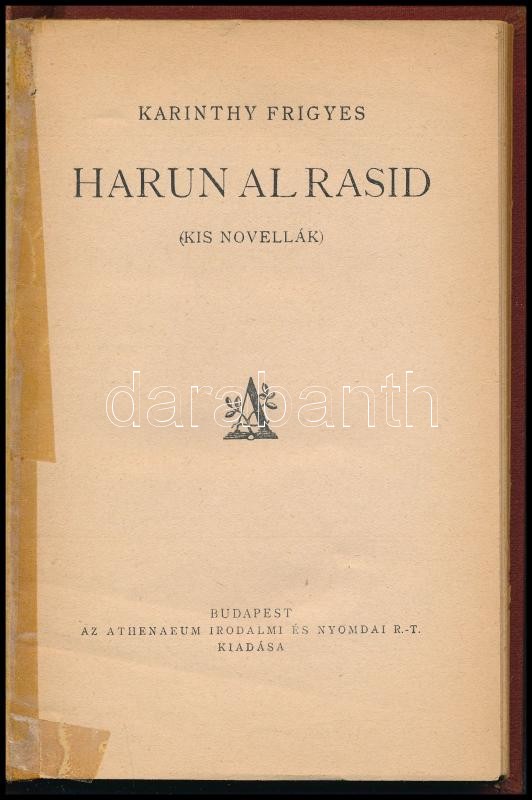 Karinthy Frigyes: Harun Al Rasid. (Kis novellák.) Bp.,[1924],Athenaeum... https://www.darabanth.com/en/342-Online-auction/342.0/Books/Books-Other-rarities~1000019/Karinthy-Frigyes-Harun-Al-Rasid-Kis-novellak-Bp-1924-Athenaeum-136plus2-p-Elso-kiadas-A~II1896486