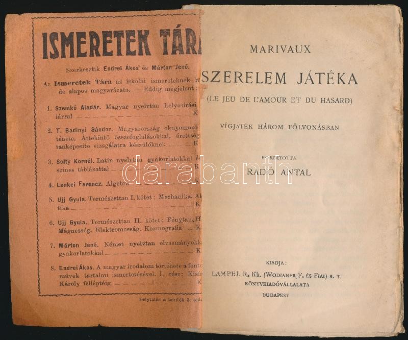 Marivaux: Szerelem játéka. (Le Jeu De L'Amour et du Hasard.) Végj... https://www.darabanth.com/en/342-Online-auction/342.0/Books/Books-Other-rarities~1000019/Marivaux-Szerelem-jateka-Le-Jeu-De-LAmour-et-du-Hasard-Vegjatek-harom-felvonasban-Ford~II1733488