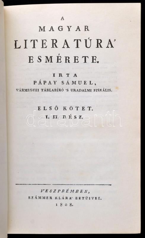 Pápay Sámuel: A magyar literatúra esmérete I-II. Veszprém, 1808 (Reprint, 1986). Műbőr kötésben