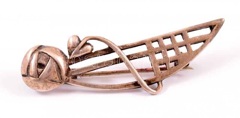 Ezüst(Ag) bross, fém tűvel, jelzett, h: 5 cm, bruttó: 4,4 g