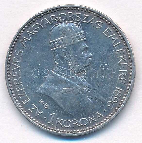 https://www.darabanth.com/en/342-Online-auction/342.0/Numismatics/Hungarian-coins-and-coins-with-Hungarian-mint-marks~1500008/1896KB-1K-Ag-Millenium-T2--Adamo-K52~II1930490