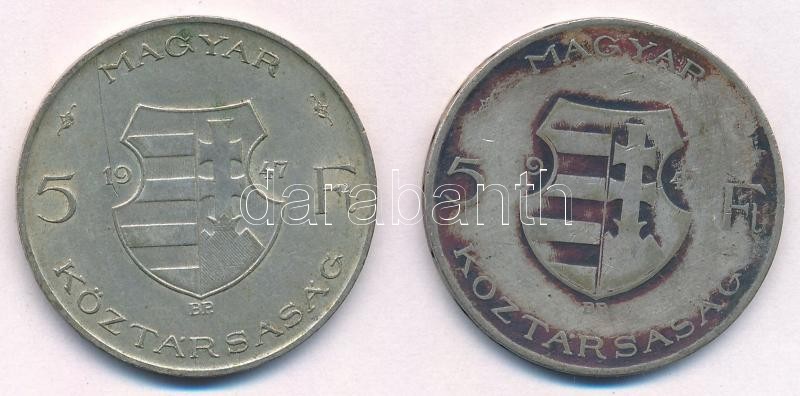 https://www.darabanth.com/en/342-Online-auction/342.0/Numismatics/Hungarian-coins-and-coins-with-Hungarian-mint-marks~1500008/1947-5Ft-Ag-Kossuth-2x-T2-3-patina-ph~II1925717