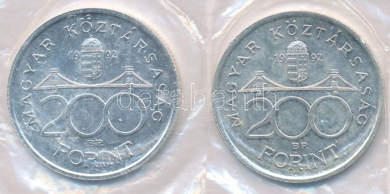1992. 200Ft Ag "MNB" (2x) T:1-,2