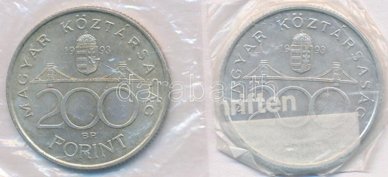 1993. 200Ft Ag "MNB" (2x) T:1-,2 patina