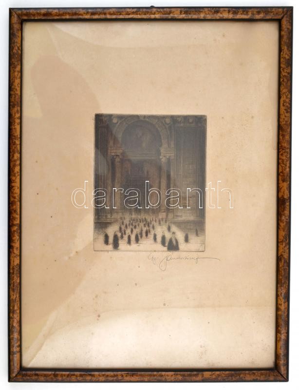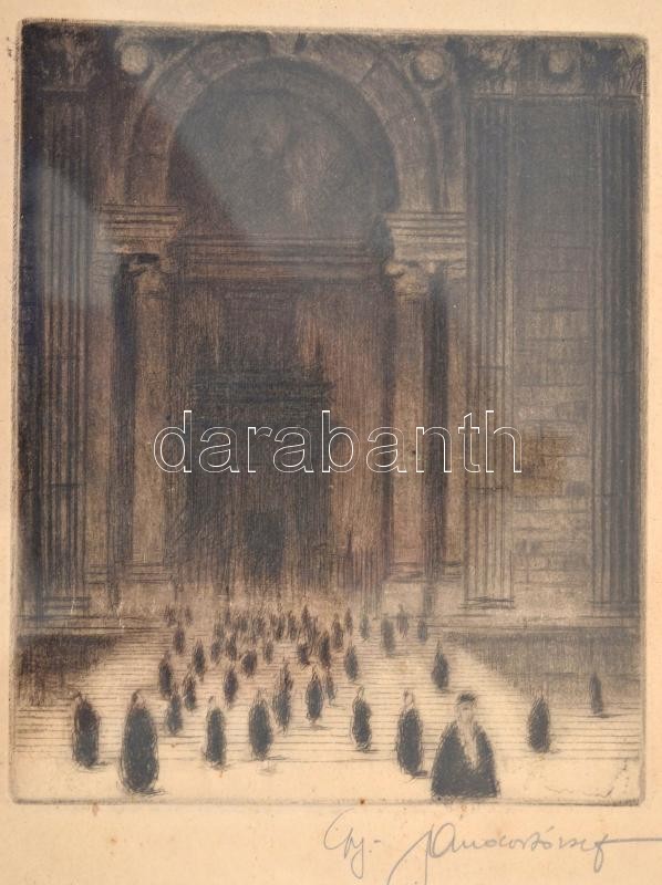 Gy Andor József (?-?): Bazilika bejárat. Rézkarc, papír, jelzett, üveg...