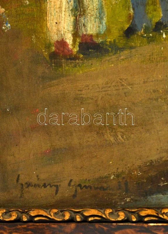 Iványi jelzéssel (Iványi-Grünwald Béla műhelyéből): Cigány tábor. Olaj, vászon, festék kopásokkal, keretben, 60×80 cm