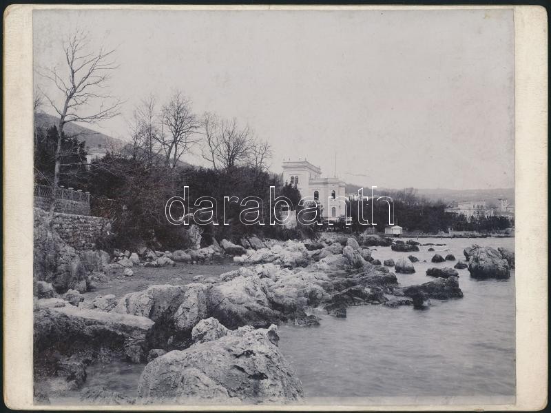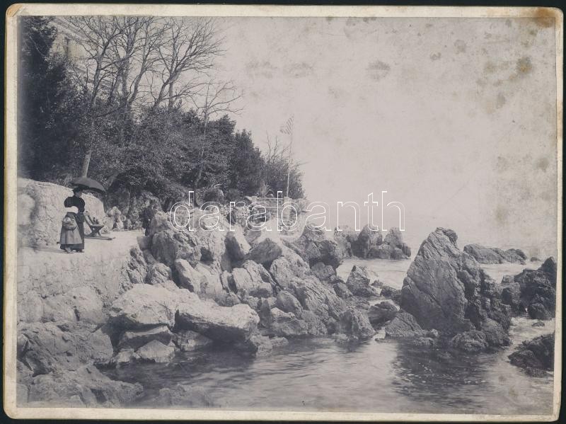 1896 Abbáziai part részlete, 2 db keményhátú fotó, az egyik felületén ...