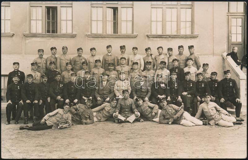 1936 Tűzoltók Bánhidán, fotólap Szlávik Rózsi műterméből (Alsógalla), ...