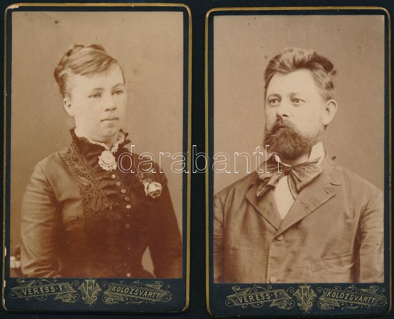cca 1885 2 db keményhátú műtermi fotó Veress Ferenc (1832-1916) kolozsvári műterméből, 10,5×6,5 cm