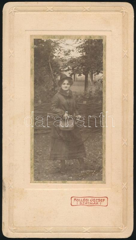 cca 1900 Vadászó nő, fotó kartonra ragasztva, Hollósi József szatmári ...