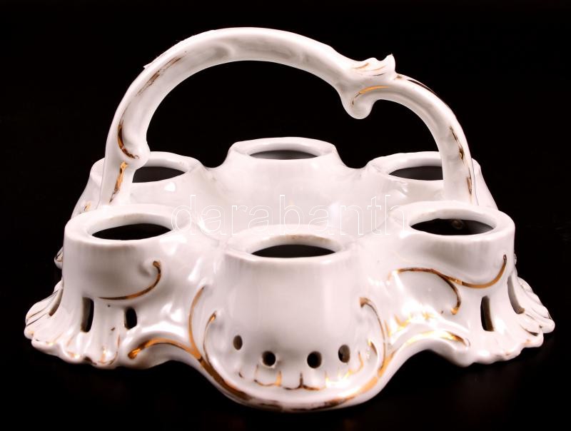 6 férőhelyes porcelán tojástartó, kézzel festett, jelzett, kopásokkal,...
