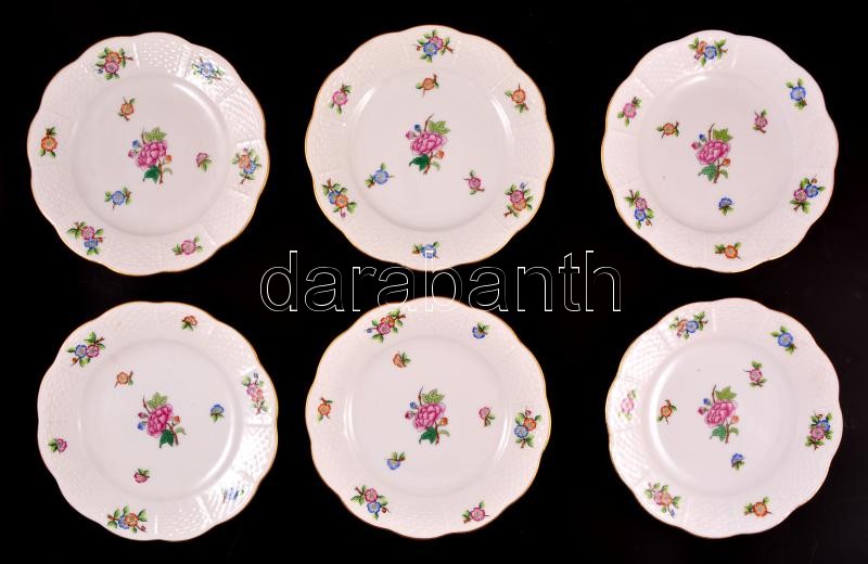 Herendi Eton mintás süteményes tányér ( 6db), kézzel festett, jelzett, apró kopás nyomokkal, d:15 cm ( 6×)