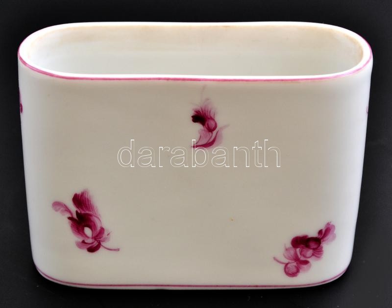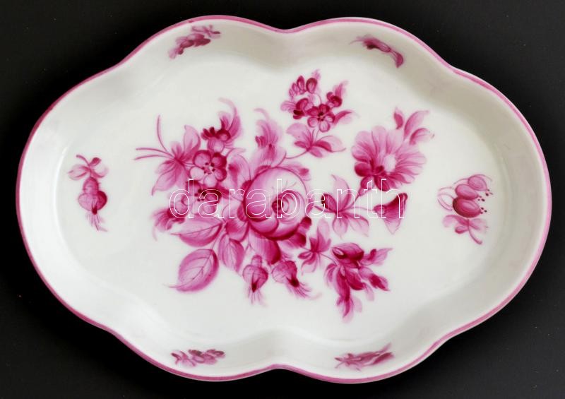 Herendi virágmintás porcelán szalvétatartó és tálka, 2 db, kézzel fest...