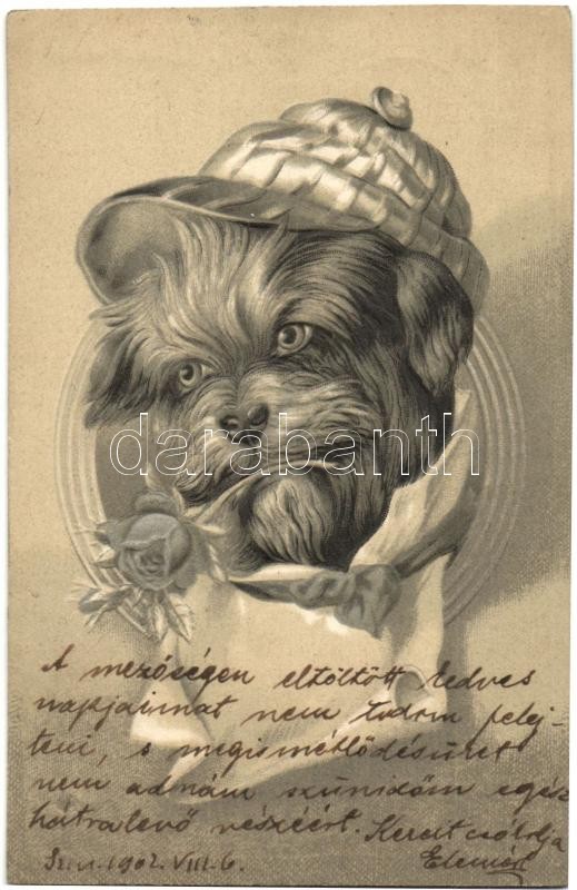 1902 Dog with rose in his mouth. Emb. litho (EK)