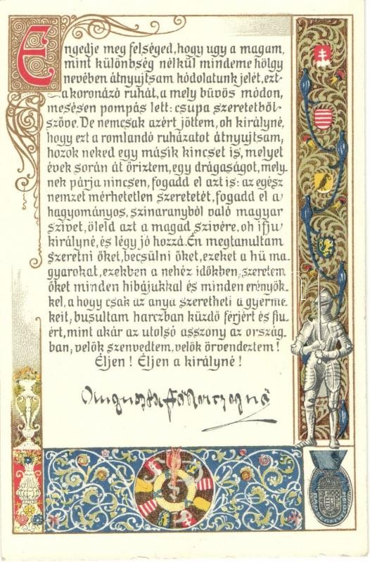 1916 Auguszta Főhercegasszony beszéde Zita Királynéhoz a magyar nők koronázási küldöttsége nevében / Speech of Princess Auguste litho