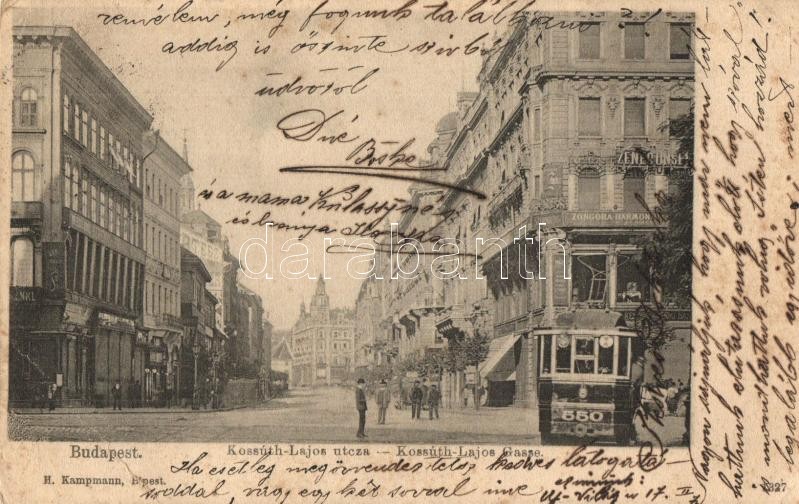 1903 Budapest V. Kossuth Lajos utca, villamos, üzletek. Kiadja H. Kamp...