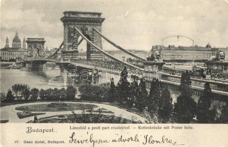 1904 Budapest, Lánchíd a pesti part részletével. Ganz Antal 97. sz. (R...