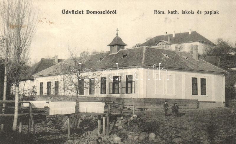 https://www.darabanth.com/en/342-Online-auction/342.0/Postcards/Hungary~2000004/1925-Domoszlo-Romai-katolikus-iskola-es-paplak-szarado-lepedok-a-hidon~II1862164