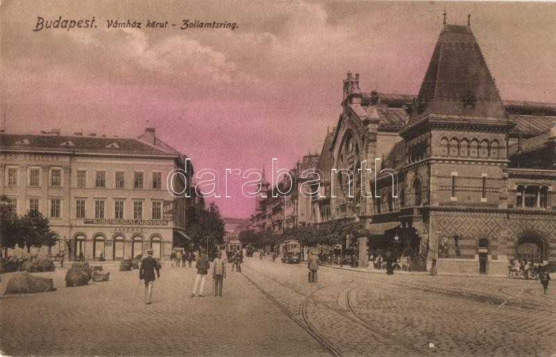 Budapest IX. Vámház körút, Nádor szálloda, villamos, kávéház, koszorúszalag nyomda (EB)