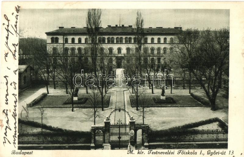 https://www.darabanth.com/en/342-Online-auction/342.0/Postcards/Hungary~2000004/Budapest-XII-Gyori-ut-13-M-kir-Testnevelesi-Foiskola-fl~II1927647