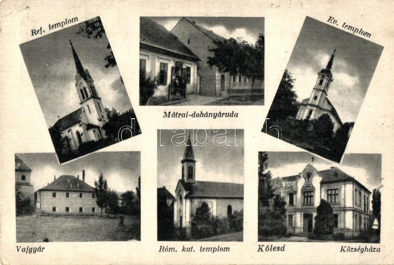 Kölesd, Református templom, Evangélikus templom, Római katolikus templom, Községháza, Vajgyár, Mátrai dohányáruda üzlete (EK)