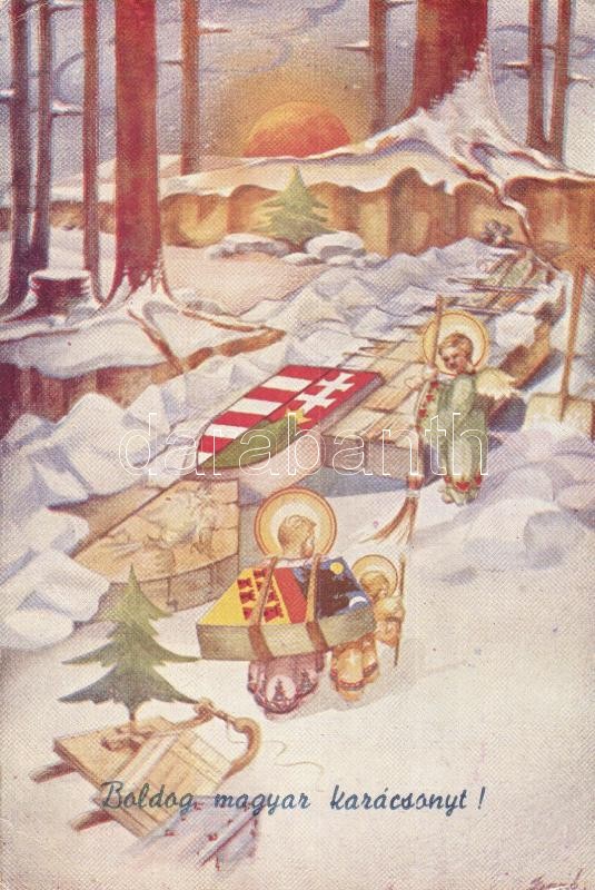 Boldog Magyar Karácsonyt! / Hungarian irredenta Christmas greeting card s: Bozó (EB)