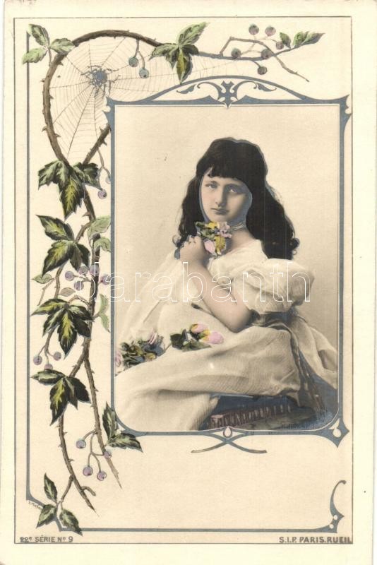 Lady with spider web. S.I.P. Paris Rueil 22. Serie No. 9. floral