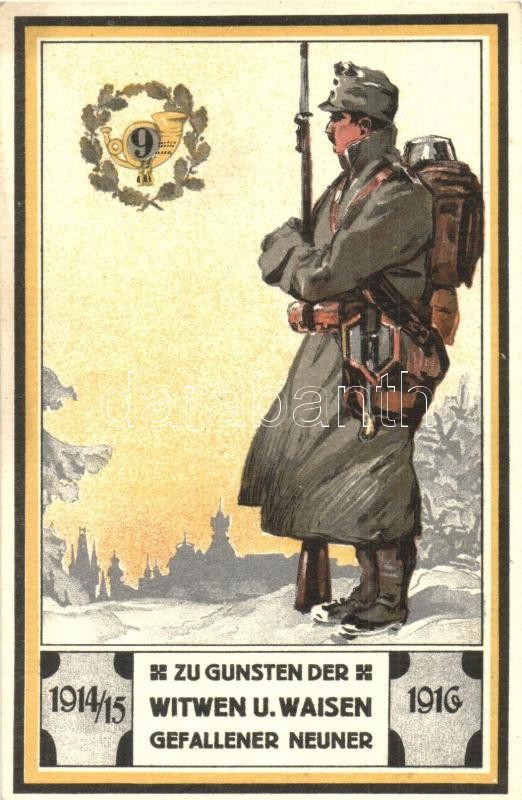 Description: 1914-1916 Zu gunsten der Witwen und Waisen Gefallener Neuner. Der Reinertrag fällt dem Witwen- und Waisenfonds des k. k. Ldw. Inf. Rgt. Nr. 9. zu / WWI Austro-Hungarian K.u.K. military infantry regiment art postcard