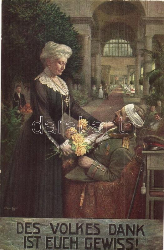 Des Volkes dank ist euch gewiss! Wohlfahrts-Karte Roten Kreuz / WWI German military Red Cross art postcard s: Art. Fischer