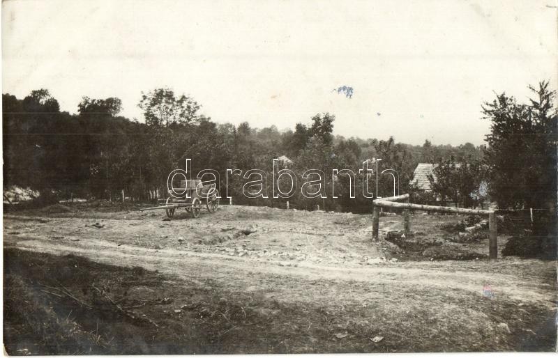 Trén fogadására előkészített terep, szekér két hordóval / WWI Austro-Hungarian K.u.K. military, ground prepared for field camp and train (packed carriages). photo