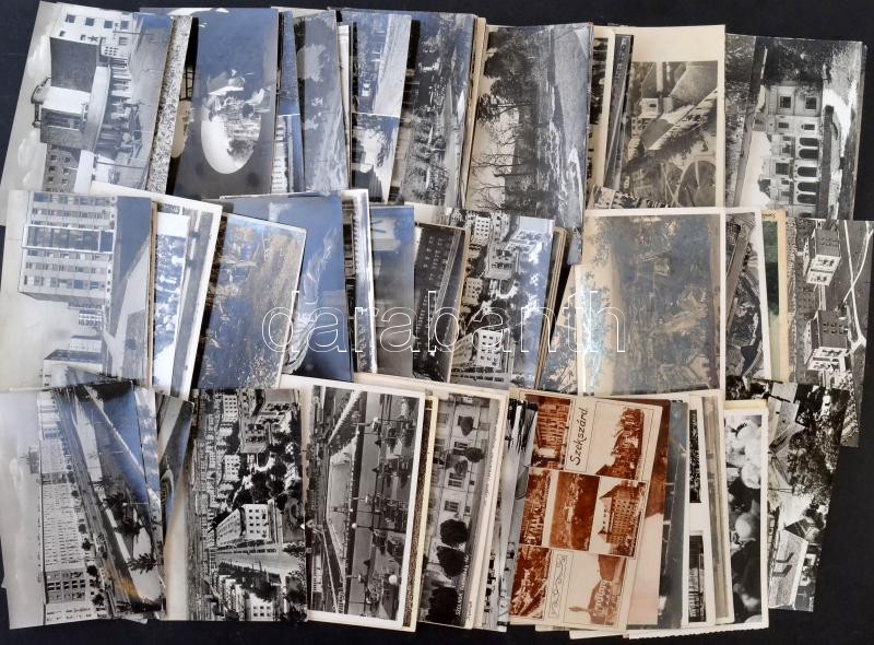 Description: Kb. 100 db VEGYES fekete-fehér retro magyar városképes lap az 1940-es és 1950-es évekből / Cca. 100 mixed black and white retroHungarian town-view postcards from the 1940's and 1950's