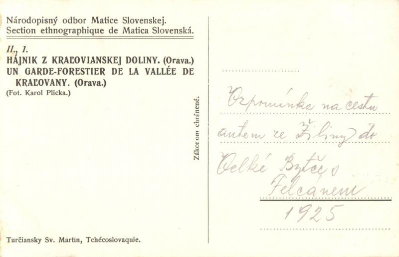 Kralován, Kralovany (Árva, Orava); Národopisny odbor Matice Slovenskej. Hájnik z Kralovianskej Doliny / A Szlovák Matica néprajzi gyűjtéséből. Erdész a Kralováni völgyből, népviselet, folklór / From the Ethnographic department of Matica slovenská. Forester, ranger from the Kralovany valley, traditional costume, folklore. Fot. Karel (Karol) Plicka