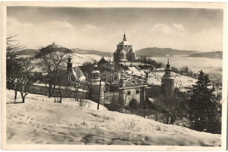 Selmecbánya, Schemnitz, Banská Stiavnica; Piargská (Frauenbergská) brána, Novy zámok, Kalvária / Hegybányai (Szélaknai) kapu, Piargi kapu, Leányvár, Kálvária télen. S. Protopopov felvétele / city gate, castle, calvary in winter (fl)