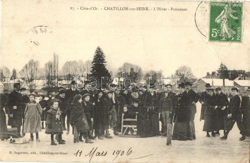 1906 Cote d'Or, Chatillon-sur-Seine, l'Hiver, Patineurs / Winter sport, ice skating people. TCV card (EB)