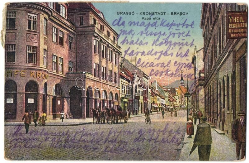 Brassó, Kronstadt, Brasov; Kapu utca, Korona kávéház, kerékpár, üzlet ...