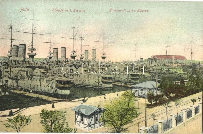 Pola, Schiffe in I. Reserve / Bastimenti in I a Riserva / Osztrák-Magy... https://www.darabanth.com/en/342-Online-auction/342.0/Postcards/Warships~2000047/Pola-Schiffe-in-I-Reserve-Bastimenti-in-I-a-Riserva-Osztrak-Magyar-Haditengereszet-csatahajC3~II1931248