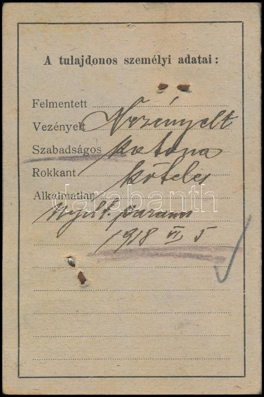 1918 Ganz és Társa - Danubius Rt. Hajógyár által kiállított fényképes igazolvány