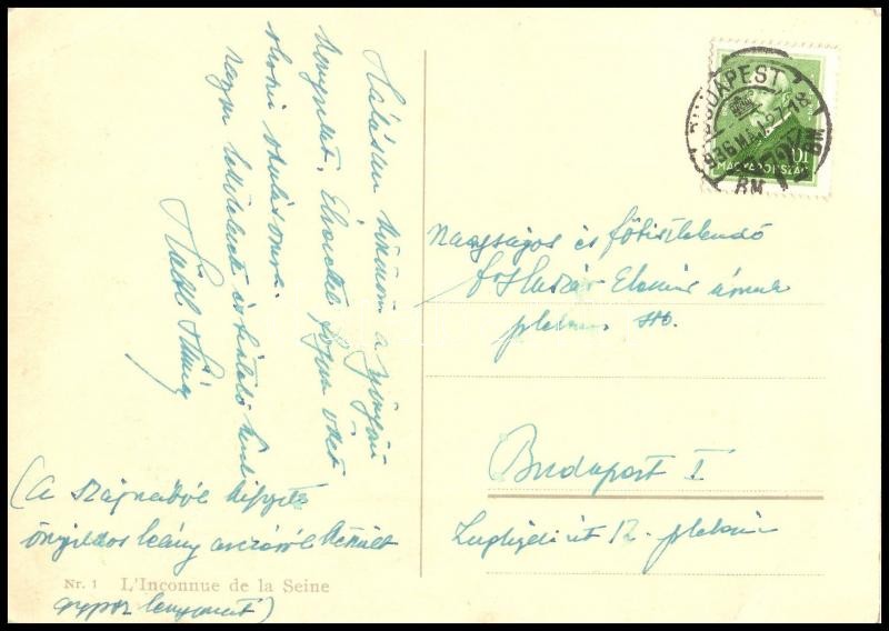 Hültl Hümér (1868-1940) sebészorvos saját kézzel írt képeslapja