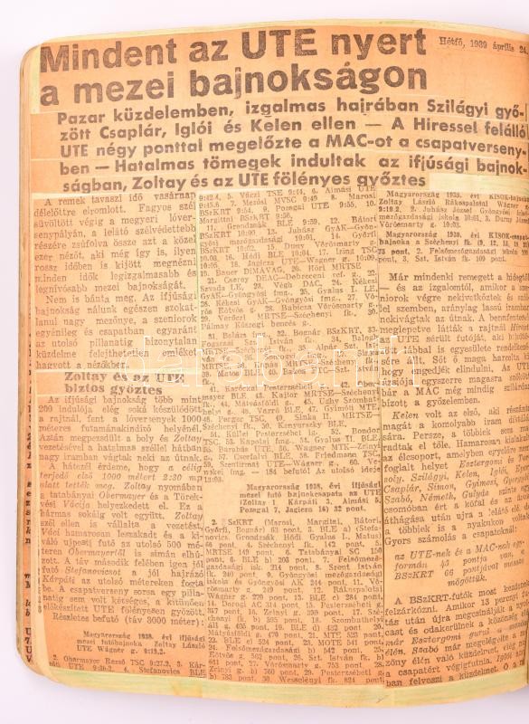 cca 1937-1948 Az UTE atlétáinak névsora, atlétikával kapcsolatos újság...