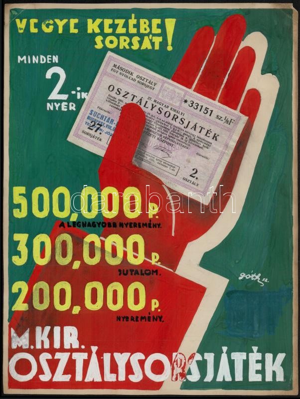 https://www.darabanth.com/en/343-Online-auction/343.0/Art-and-other-collectibles/Posters~500031/1932-Vegyes-kezebe-sorsat-Magyar-Kiralyi-Osztalysorsjatek-plakatterv-Goth-szignoval-~II1935062