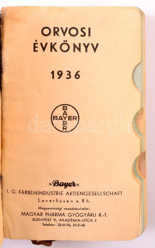https://www.darabanth.com/en/343-Online-auction/343.0/Art-and-other-collectibles/Printed-Materials~500030/1936-Orvosi-evkonyv-Bp-Magyar-Pharma-Gyogyaru-kisse-kopott-borkotesben~II1935786