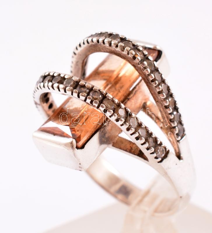 Ezüst (Ag) kövekkel gazdagon díszített gyűrű, jelzett, méret: 54, brut...